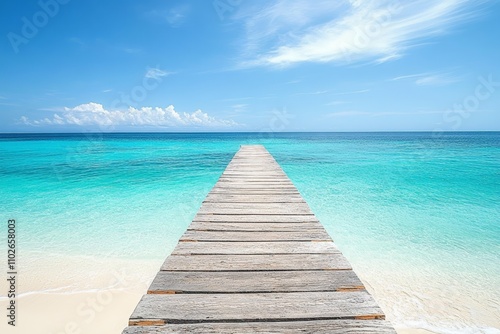 Fototapeta premium Tropical Beach Paradise with Wooden Pier and Turquoise Ocean