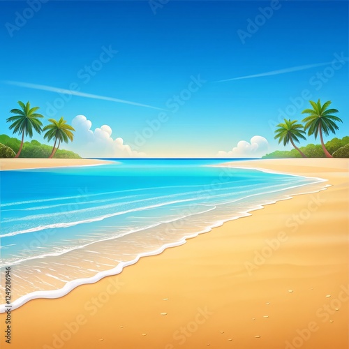 Obraz premium Tropical Beach Scene Vibrant Vector Illustration of Calm Ocean Waves on Sandy...