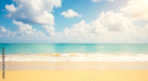 Obraz premium Tropical Beach Serenity A Blurred Seascape Under a Sunny Sky with Gentle Waves