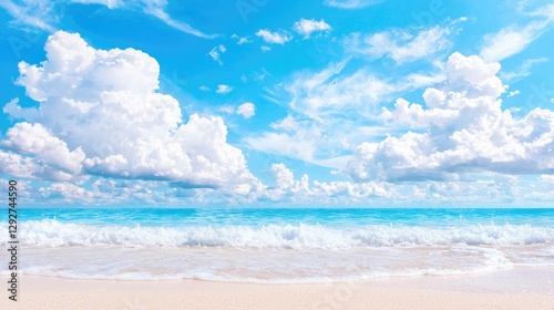 © MAKASIHMAS SIDNEY, Fototapeta premium Tropical beach, turquoise waves, sunny sky, vacation background (1)