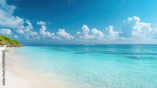 Fototapeta premium Tropical beach with clear blue water and white sand, embodying serene...