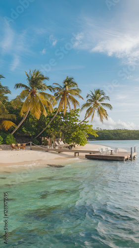 © MaLik, Obraz premium tropical beach with coconut palm trees