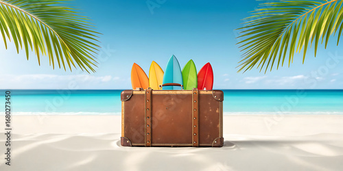 © MdIftekhar, Obraz premium Tropical beach with coconut palm trees on a sunny island