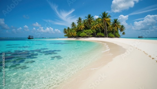 © Aressx, Naklejka premium tropical beach with palm trees