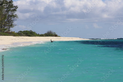 © Aleksei, Fototapeta premium tropical beach with palm trees and blue sky