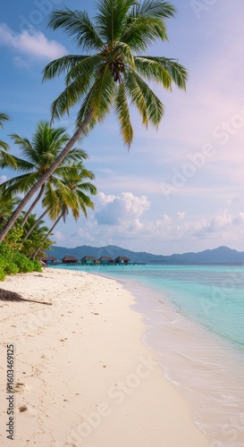© Subu.STD, Obraz premium Tropical beach with palm trees and water bungalows