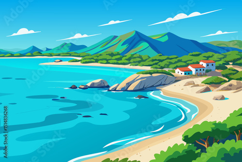 © Design one, Fototapeta premium tropical beach with palm trees vector