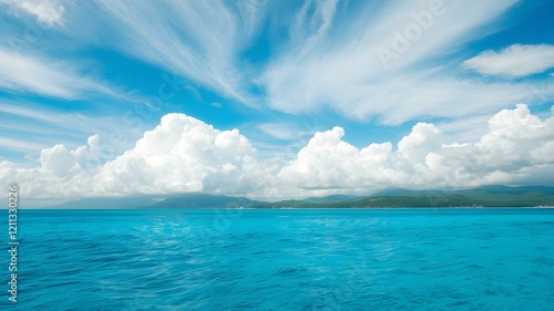 Obraz premium tropical beach with turquoise water and white clouds in the blue sky