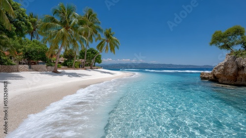 Fototapeta premium Tropical Beach with White Sand and Crystal Clear Turquoise Water
