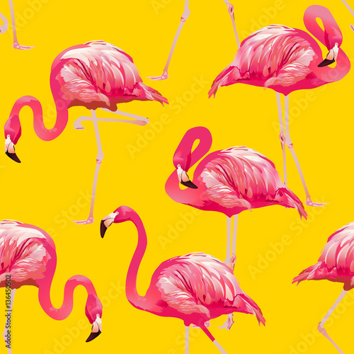 © Angelina Bambina, Naklejka premium Tropical Bird Flamingo Background - Seamless pattern vector