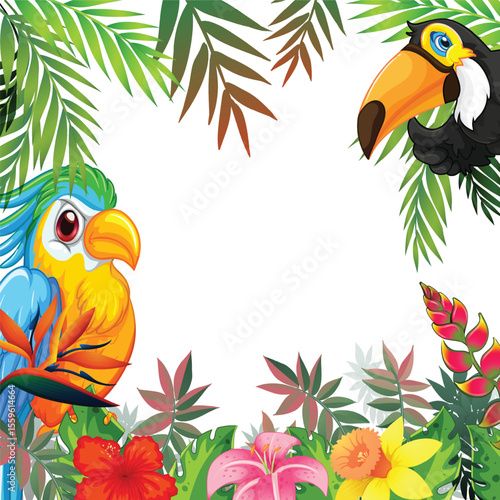 Fototapeta premium Tropical Birds and Exotic Floral Frame