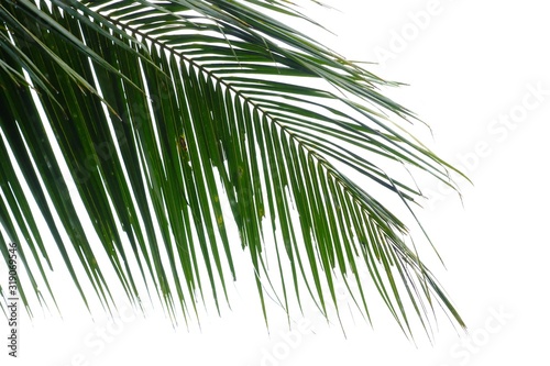 Obraz premium Tropical coconut tree leaves on white isolated background for green foliage...