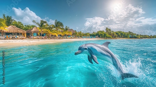 © andi, Fototapeta premium Tropical Dolphin Leap at Beach Resort