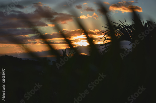 © Abigale, Fototapeta premium Tropical ferns with sunset backdrop in Hawaii