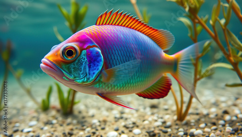 Naklejka premium Tropical fish in aquarium colorful blue and orange goldfish concept