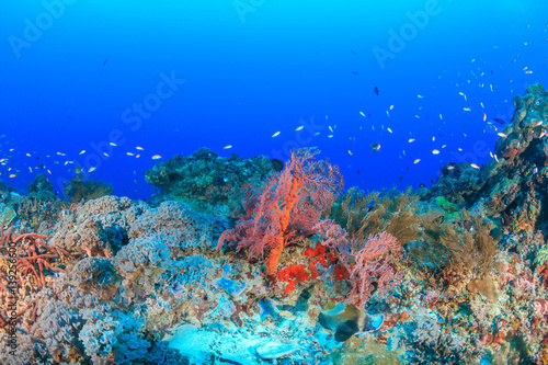 Obraz premium Tropical fish on a deep, healthy coral reef