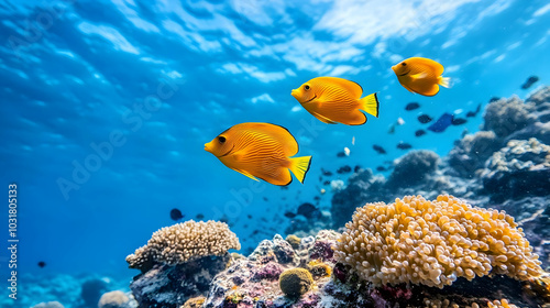 Fototapeta premium Tropical Fish Swimming Over Coral Reef.