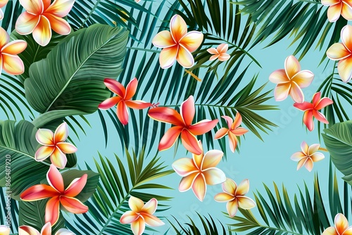 © Mandan, Naklejka premium Tropical Floral Pattern: A Seamless Design