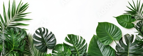 Fototapeta premium Tropical foliage arrangement on white background