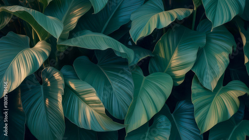 Fototapeta premium Tropical Foliage: Golden Light, Natural Elegance Background