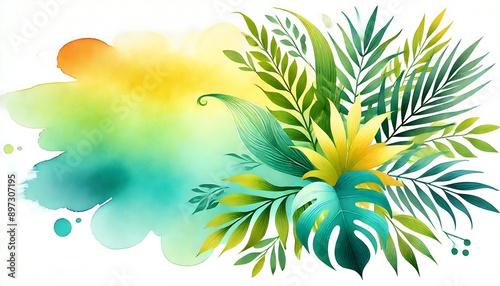 Obraz premium Tropical Foliage with Watercolor Background