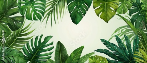© Genzo, Naklejka premium tropical forest leaf background. tropical leaves backdrop