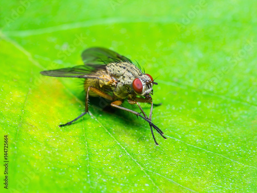 Fototapeta premium Tropical Fruit Fly on Leaf