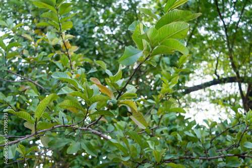 Fototapeta premium Tropical fruit guava on guava tree. Psidium guajava