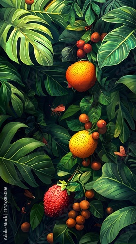 © picUpUp, Fototapeta premium Tropical fruits and greenery