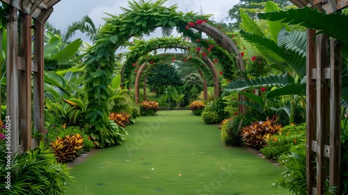 © Yelena, Naklejka premium Tropical garden with ferns and vines twining