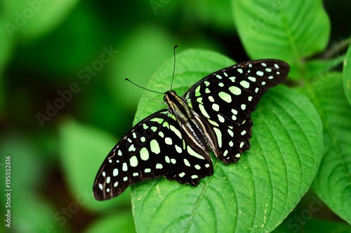 Obraz premium tropical green butterfly in the green rain forest