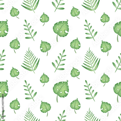 © Bonbonny, Fototapeta premium Tropical green leaves seamless pattern