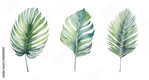 © SaviArt, Obraz premium Tropical green leaves watercolor illustration