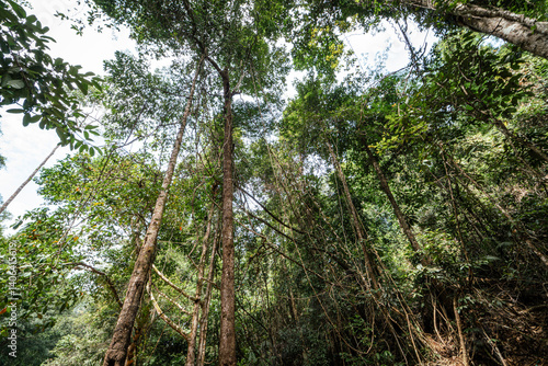 © themorningglory, Fototapeta premium Tropical green tree plant wooden background