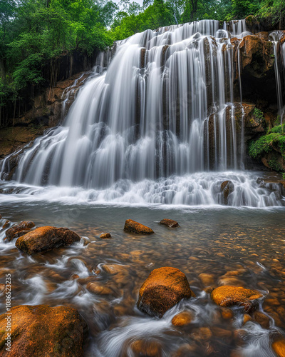 Obraz premium tropical haven, cascading nature, woodland peace, filtered sunlight, radiant...