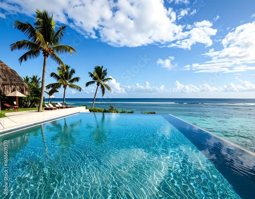Fototapeta premium Tropical infinity pool overlooking ocean