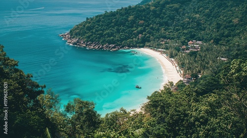 Naklejka premium Tropical Island Beach Paradise Lush Green Foliage