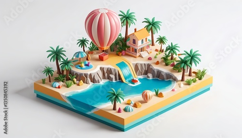 © ลลิดา ไชยศรีษะ, Obraz premium Tropical Island Paradise 3D Render of Idyllic Beach Scene