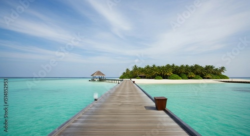Obraz premium Tropical Island Paradise With Pier and Azure Ocean