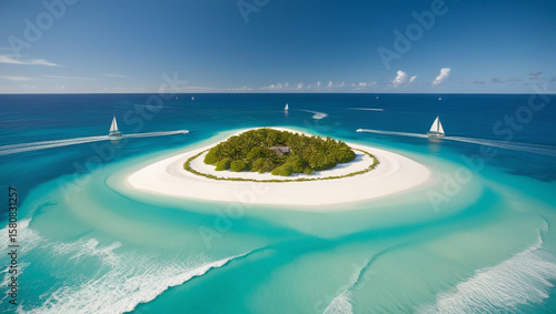 © technomotiur, Obraz premium Tropical Island Paradise with Turquoise Waters and White Sand Beaches