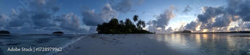 © Ayou.Y, Obraz premium Tropical island sunset beach hdri panoramic view equirectangular environment