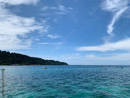 © mysf, Fototapeta premium Tropical Island with boats in Malaysia