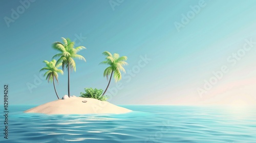 © BNNC TV, Fototapeta premium Tropical island with palm trees 3D