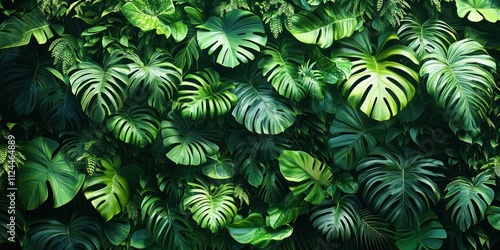 Fototapeta premium tropical jungle leaves vibrant background lush green foliage intricate...