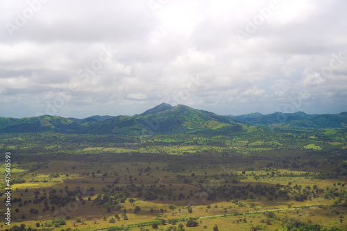 © piksik, Naklejka premium Tropical jungle mountain in Dominican Republi. Aerial view