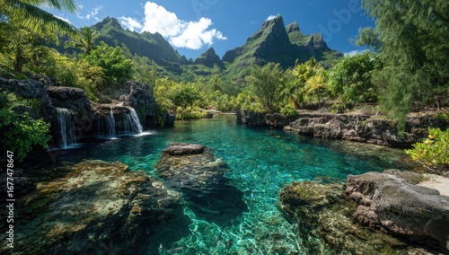 © Virendra, Fototapeta premium Tropical lagoon nestled in lush valley