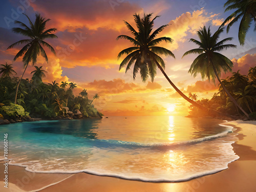 © Creuxnoir, Fototapeta premium Tropical landscape view from beach under sunset