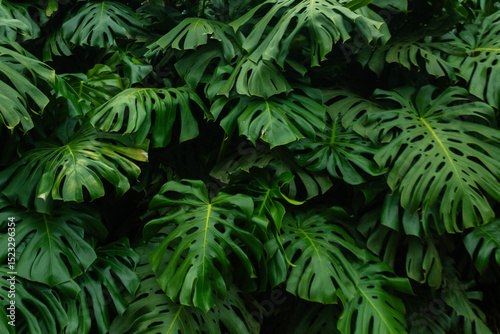 Fototapeta premium Tropical leaf background with vivid, high contrast greens