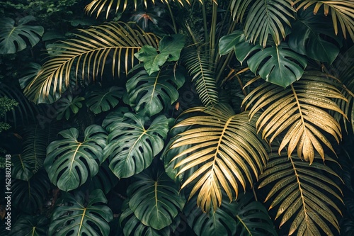 Fototapeta premium Tropical leaf background with vivid, high contrast greens