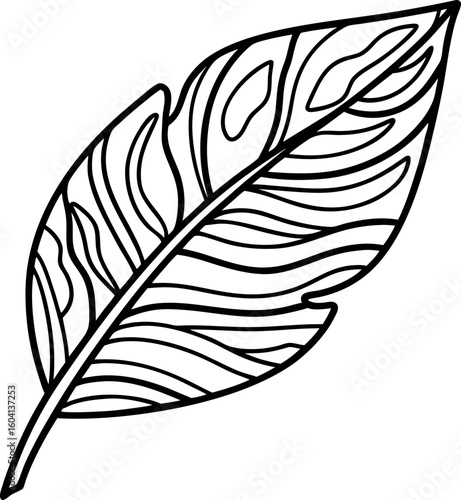Obraz premium Tropical leaf outline with hand drawn linear details botanical minimal leaf...